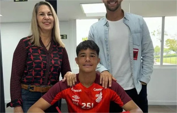 Bruninho Samudio, de 14 anos, assinou contrato como goleiro do Athletico-PR. O anúncio foi feito pelo Furacão na última quinta-feira…