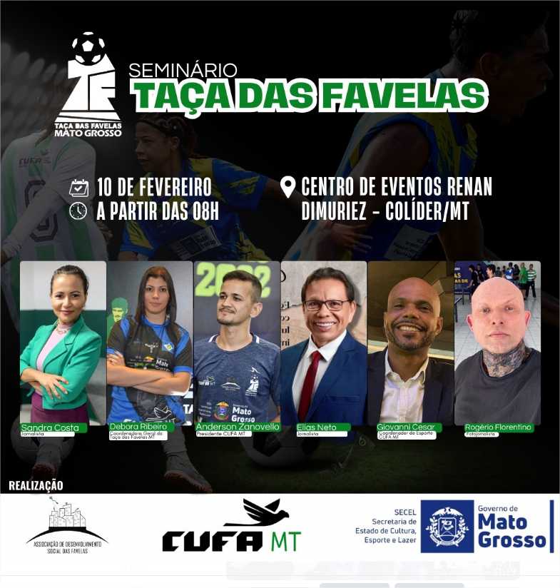 A Central Única das Favelas de Mato Grosso (Cufa/MT) vai promover o seminário da Taça das Favelas no dia 10…