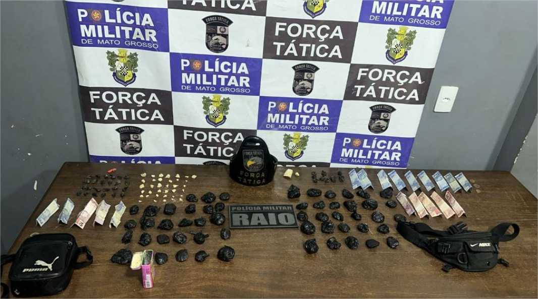 Força Tática e Raio apreendem 132 porções de drogas e prendem dupla por tráfico em Rondonópolis