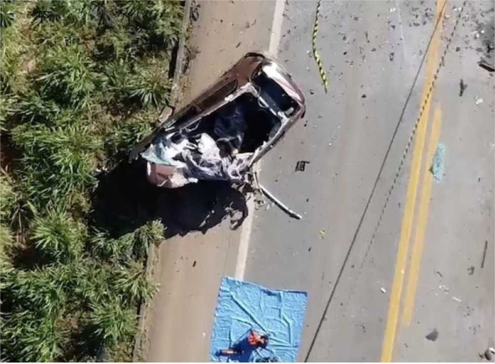 A vítima fatal estava em um VolksWagen T Cross que bateu de frente em um caminhão que vinha em sentido contrário. O impacto foi tão violento que o carro de passeio ficou sem toda sua parte superior.