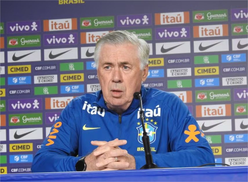 No primeiro treino com o grupo completo, Ancelotti esboçou a Seleção com a seguinte escalação: Alisson, Wesley, Marquinhos, Gabriel Magalhães e Douglas Santos; Casemiro e Bruno Guimarães; Raphinha, Estêvão, João Pedro e Gabriel Martinelli.