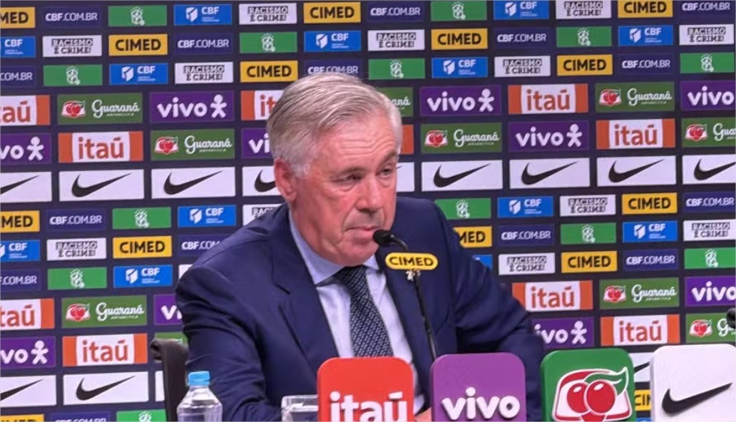 Carlo Ancelotti convocou, nesta segunda-feira, a Seleção Brasileira para as últimas rodadas das Eliminatórias contra Chile e Bolívia. Depois do anúncio, o italiano explicou a ausência de Neymar, que está com um pequeno edema na coxa esquerda. Apesar disso, o treinador voltou a convocar Lucas Paquetá, do West Ham, da Inglaterra.