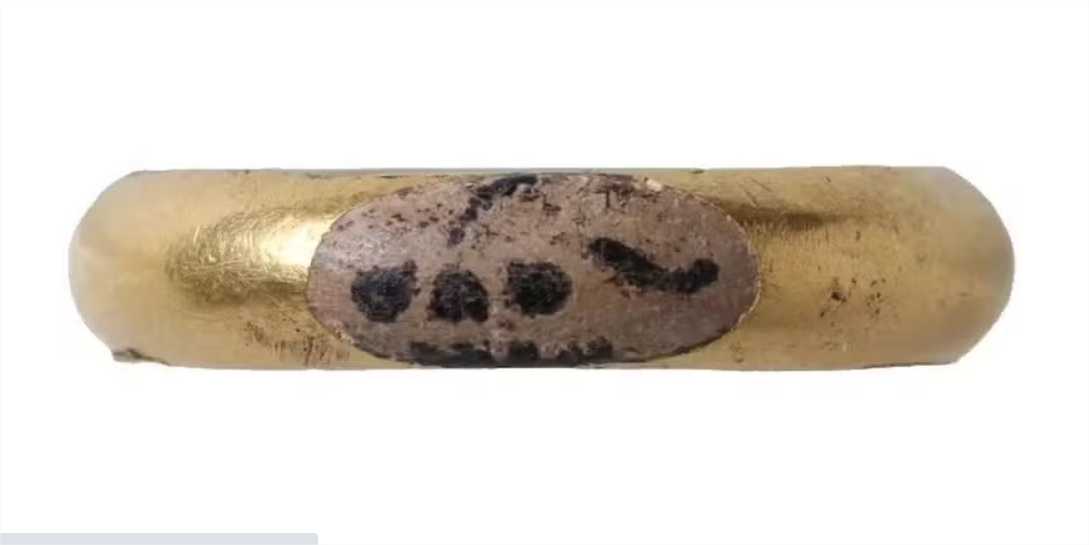 As inscrições que aparecem no interior do anel, feito de ouro, são as seguintes: “B.G. Bart. ob: 10. Out: 1723. aet: 56”. O Museu Britânico, que conduziu a análise da peça ao longo dos últimos meses, indica que as informações estão em latim, e significam “B.G. Baronete, morto em 10 de outubro de 1723, aos 56 anos”.