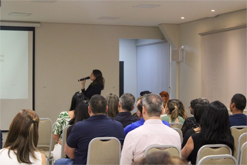 Outro ponto abordado na palestra foi a relação entre arquitetura e branding. Para Rafaela, o espaço físico é uma extensão da marca e deve ser pensado para engajar os sentidos. “O adulto aprende sentindo, e a arquitetura é totalmente sobre sentidos. Você sente as texturas, os cheiros, ouve os sons, como o barulho de um lago ou o cheiro de uma fruta. Tudo isso comunica a marca sem que a pessoa precise ouvir ou ler sobre ela. Muitas vezes, falamos para a equipe sobre os valores da empresa, mas, se a arquitetura não faz sentido, isso não se internaliza. Quando o ambiente é coerente, as pessoas vivenciam os valores e os transmitem naturalmente”, explicou.