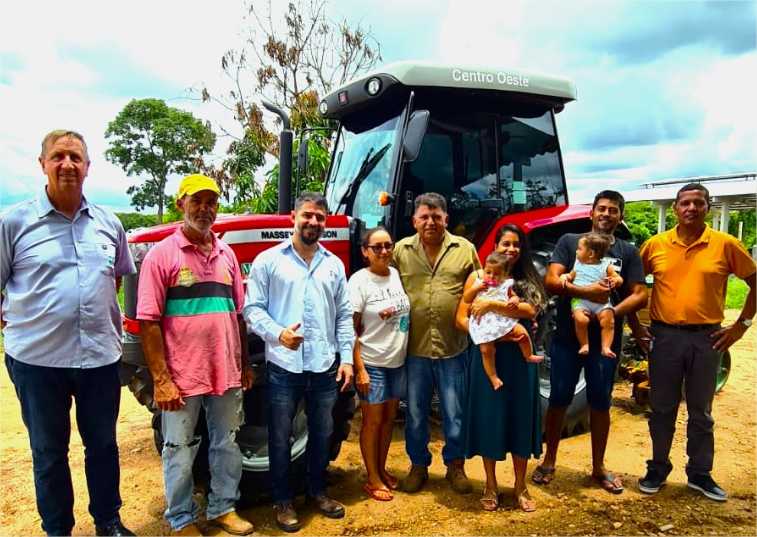 Seguindo na mesma linha do pai, Jovane Sebastião Moura Brandão, 29 anos, também está feliz com a aquisição de um trator. Ele e a esposa, Gabriele Campos Curado Brandão, tiveram recentemente os gêmeos Maitê e Matheo e a otimização do trabalho agrícola seria o principal motivo da aquisição.