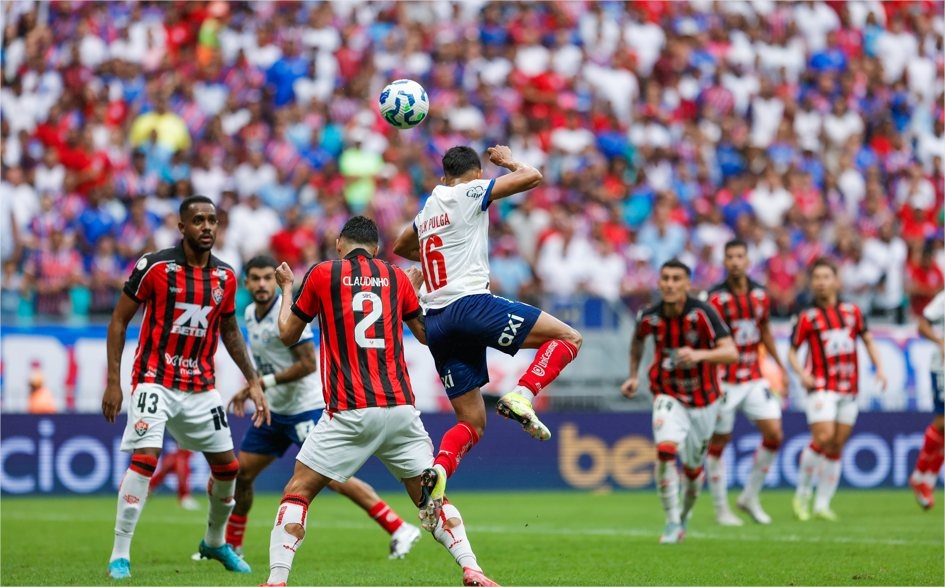 Pouco depois, o Vitória também teve um jogador expulso. Pepê, que havia acabado de entrar, deu um soco na perna do volante uruguaio Acevedo e recebeu o cartão vermelho direto, facilitando a missão do Bahia em segurar o resultado nos minutos finais.