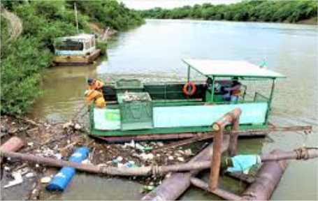 Realizada pela Locar Saneamento Ambiental, o serviço de coleta fluvial de lixo está em plena operação na limpeza do Rio Cuiabá. Nesta terça-feira (04), por exemplo, em apenas uma das ações, a equipe de trabalhadores recolheu quase meia tonelada de resíduos sólidos, utilizando a nova balsa ecológica.