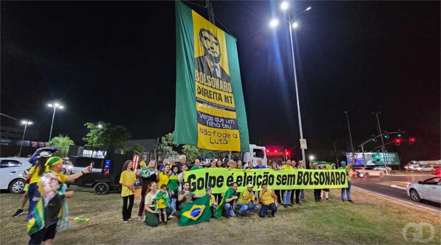 Apoiadores do ex-presidente Jair Bolsonaro (PL) travaram o trânsito durante horário de pico, em Cuiabá, nesta terça-feira (22). Eles se concentraram na rotatória entre as avenidas Fernando Corrêa da Costa e Beira Rio, duas das mais movimentadas da cidade, em “adesivaço” contra decisão do Supremo Tribunal Federal (STF) e defesa do ex-chefe do Executivo, que está monitorado por tornozeleira eletrônica.