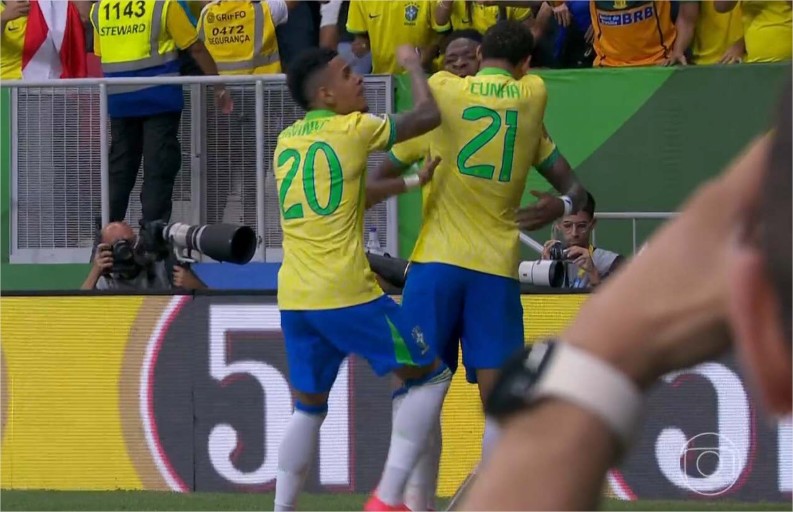BRASIL: Alisson (Bento, 31’/2°T); Vanderson (Wesley, 32’/2°T), Marquinhos, Gabriel Magalhães e Guilherme Arana; Bruno Guimarães (André, 32’/2°T), Gerson (Joelinton, 28’/1°T) e Raphinha; Rodrygo (Savinho, 32’/2°T), Vini Jr e João Pedro (Joelinton, 14’/2°T). Técnico: Dorival Júnior.
