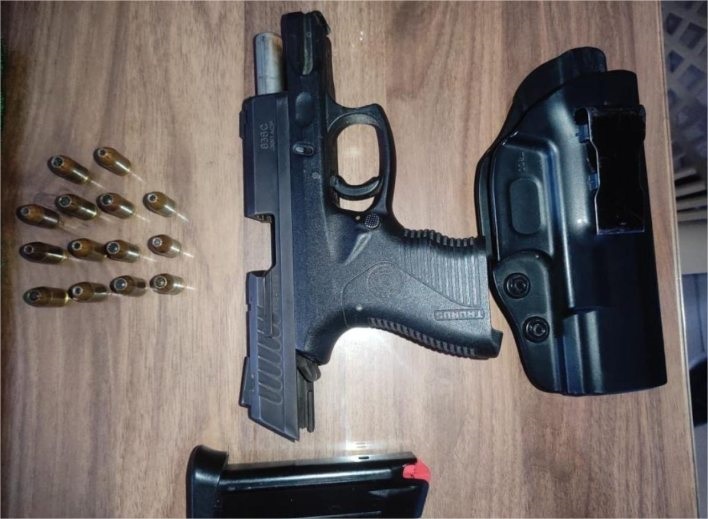 Durante a ação, os policiais deram cumprimento ao mandado de prisão contra o suspeito e também apreenderam a arma de fogo utilizada no crime, além de mais 14 munições.