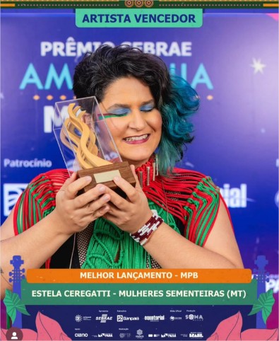 A cantora mato-grossense Estela Ceregatti conquistou o Prêmio Sebrae da Música da Amazônia, na categoria Melhor Lançamento MPB, em cerimônia realizada no Theatro da Paz, em Belém (PA), na noite de terça-feira (26.08). Ela concorreu com a canção “Mulheres Sementeiras”, em homenagem às mulheres xavantes coletoras de sementes.