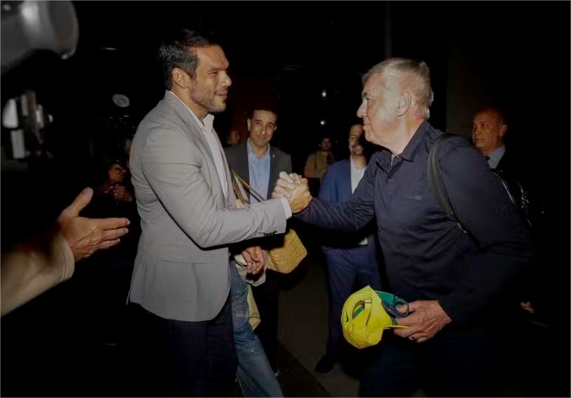 Ao descer do carro, Ancelotti foi visto conversando com Rodrigo Caetano, diretor de seleções da Confederação Brasileira de Futebol. Na sequência, o treinador caminhou junto a Samir Xaud, eleito presidente da CBF em pleito neste domingo; o mandato do novo dirigente vai até 2029.