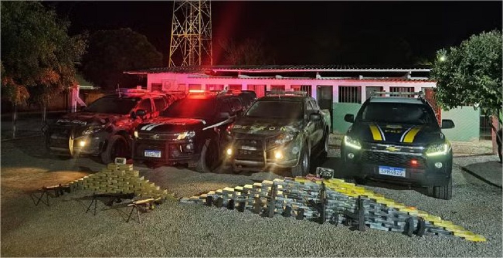 No local, além dos investigados e dos veículos, também foram encontradas várias mochilas, onde estavam escondidas as drogas, as armas e 17 carregadores de fuzis.