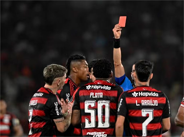 A Conmebol admitiu nesta sexta-feira que houve erro na expulsão de Plata na vitória do Flamengo sobre o Estudiantes por 2 a 1, na quinta-feira, no Maracanã. No vídeo divulgado pela entidade, antes dos áudios do VAR, o narrador reconhece que o árbitro colombiano Andrés Rojas não deveria ter mostrado o cartão vermelho.