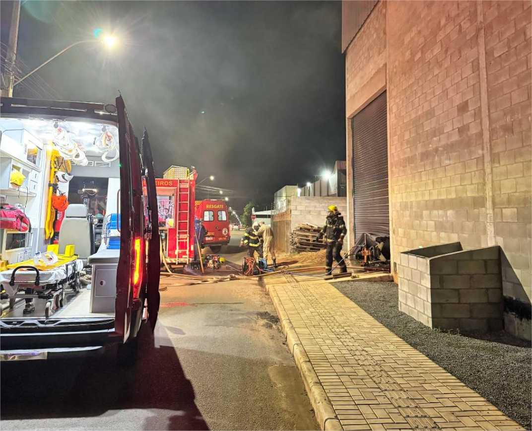 A equipe do 5° Batalhão de Bombeiros Militar (5º BBM) foi acionada por volta das 19h para o combate ao incêndio. Imediatamente, três viaturas foram mobilizadas para o atendimento. Ao chegarem ao local, os bombeiros constataram que o incêndio estava restrito à parte dos fundos da indústria onde estavam armazenados resíduos de madeira e serragem em bags, o que aumentava o risco de propagação das chamas.