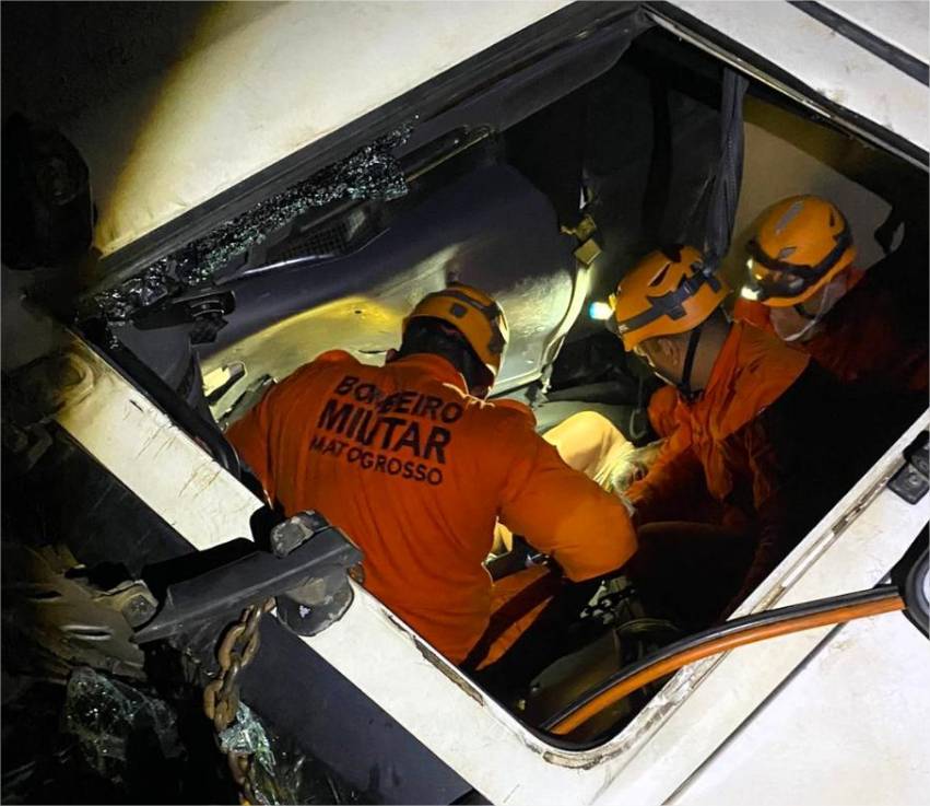 A 11ª Companhia Independente de Bombeiro Militar (11ª CIBM) foi acionada por volta das 21h30 para atender a uma ocorrência envolvendo um caminhão que tombou após sair da pista, na rodovia. Ao chegar ao local, a equipe encontrou o veículo fora da estrada, com o condutor com as pernas presas às ferragens. Inicialmente, os bombeiros avaliaram os sinais vitais da vítima e iniciaram o trabalho de desencarceramento.