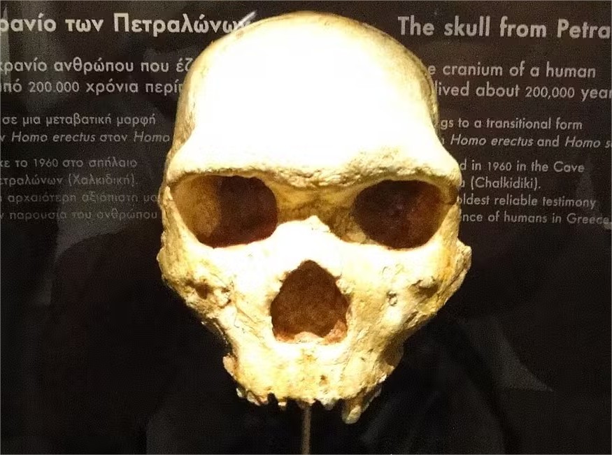Em 1960, um crânio foi descoberto na caverna de Petralona, na Grécia. Chamado de crânio de Petralona desde então, o artefato é importante para o estudo da evolução humana. Um estudo publicado na edição de setembro do periódico Journal of Human Evolution dá uma estimativa mais próxima da idade do fóssil e sugere que este não era de um humano, nem de um neandertal.