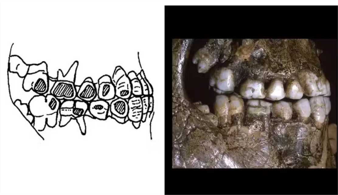 À medida que os humanos envelhecem, o esmalte dos dentes naturalmente se desgasta por meio de comportamentos repetidos (mastigar, ranger e segurar objetos na boca). Essas atividades geralmente fazem com que a camada fique mais plana ou ligeiramente angulada na superfície de mastigação. Porém, no caso dos pavlovianos, o desgaste parecia estar no lado contrário, voltado à bochecha.