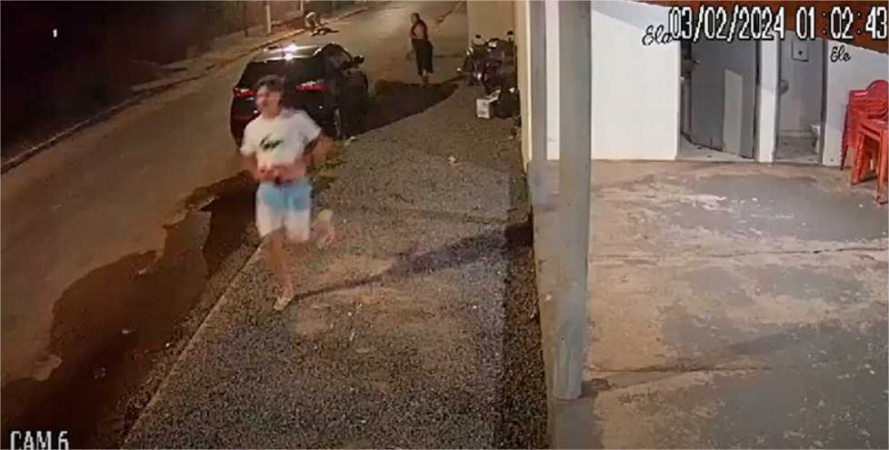 Num vídeo (abaixo) gravado por câmeras de segurança, é possível ver um homem de camisa branca correndo e guardando “uma arma” na cintura após o atropelamento.