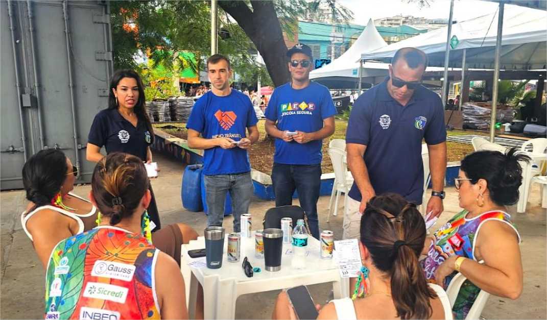 No sábado (1.3) a Coordenadoria de Ações Educativas esteve na Praça Santos Dumont, em Cuiabá, abordando os foliões de blocos carnavalescos do local, com entrega de kit educativo e orientações de segurança no trânsito.