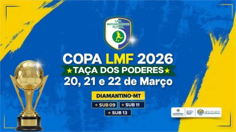 A Prefeitura de Diamantino, por meio da Secretaria Municipal de Esportes e Lazer, realiza, em parceria com a Liga Mato-grossense de Futsal e com o apoio da Câmara Municipal de Diamantino, a Copa LMF 2026 – Taça dos Poderes de Futsal. O município será sede da etapa regional da competição, que deve reunir jovens atletas de diversas cidades da região.