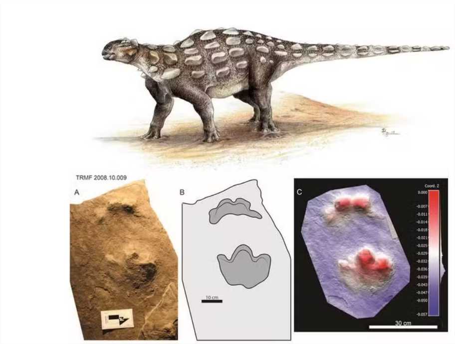 Pegadas de dinossauros com armaduras e caudas de clava foram encontradas pela primeira vez na história. Um estudo publicado na revista científica Journal of Vertebrate Paleontology sugere que as pegadas fossilizadas de 100 milhões de anos da província de Colúmbia Britânica, no Canadá, correspondam a um anquilossauro.