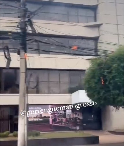 Parte da copa de uma árvore pegou fogo na Avenida Presidente Getúlio Vargas, no bairro Goiabeiras, em Cuiabá, nesta sexta-feira (12), após fios da rede de energia elétrica se desprenderem de postes e entrarem em curto. As chamas eram avistadas de longe e assustaram os pedestres.