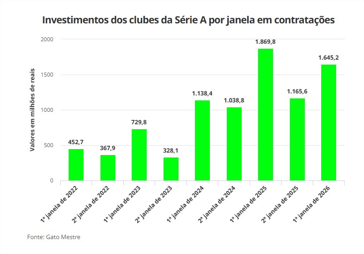 O encerramento da janela de transferências no Brasil consolida mais um período de cifras bilionárias. Ao todo, os clubes da Série A investiram R$ 1,645 bilhão na contratação de 158 jogadores.