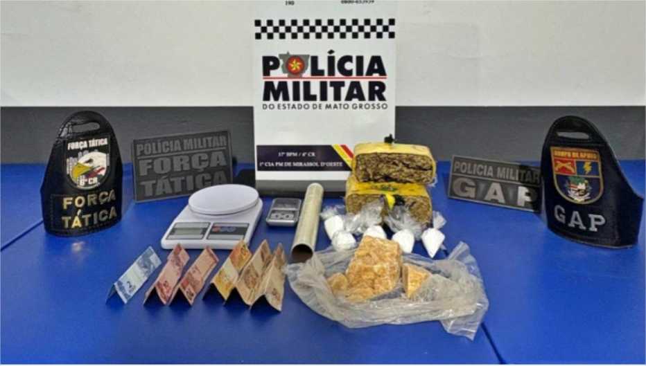 A equipe da Força Tática entrou no imóvel e localizou mais meio tablete de maconha, uma sacola contendo pedras de pasta base e mais seis porções grandes de cocaína. Além disso, foi apreendido uma balança de precisão e materiais utilizados para o tráfico.