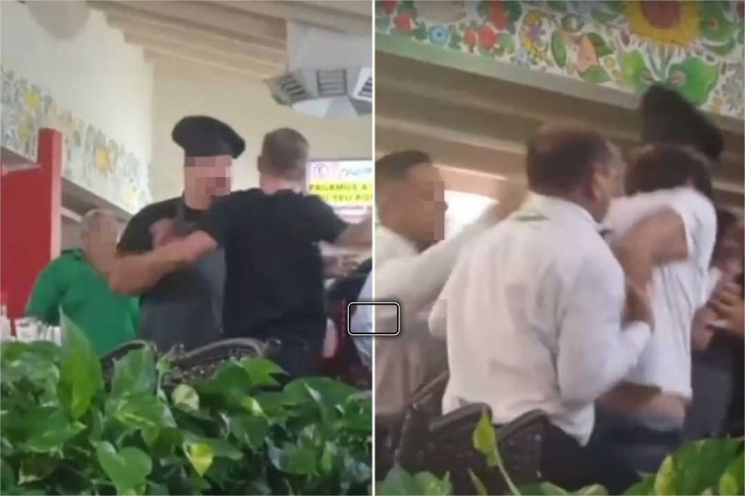 Em vídeo divulgado nas redes sociais, filmado por outro cliente que presenciou o caso, o homem diz que a confusão teve início porque os funcionários do restaurante estariam defendendo uma mulher que foi agredida.