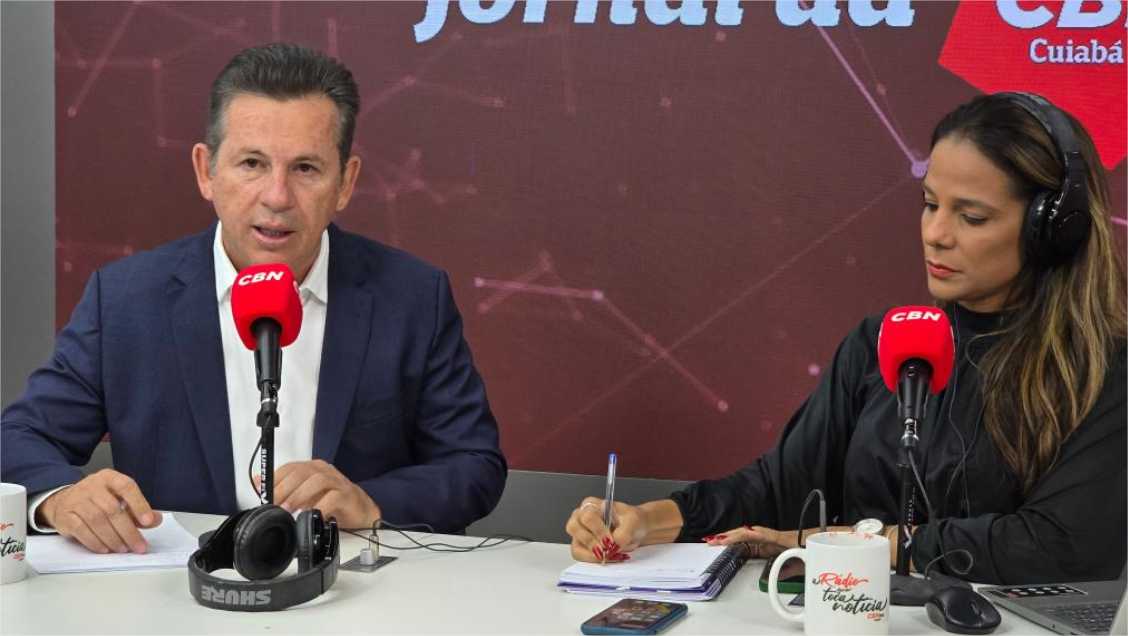O governador Mauro Mendes durante a entrevista - Crédito - Lucas Rodrigues/Secom