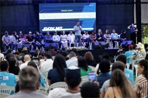Durante o evento, o governador Mauro Mendes assinou ordem de serviço para asfalto novo em ruas e avenidas de Salto do Céu, no valor de R$ 1,5 milhão, ampliando a infraestrutura urbana da cidade.