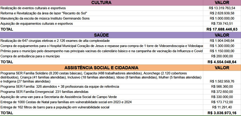Confira parte dos investimentos entregues pelo governo de Mato Grosso, em Campo Verde desde 2019.