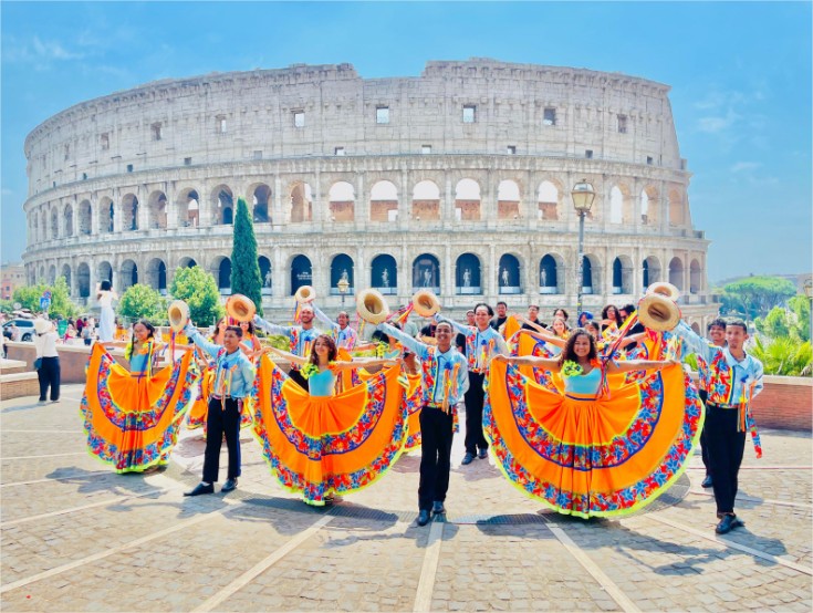 A atual parada foi no Coliseu, um dos lugares mais marcantes da história mundial. O Grupo Flor de Atalaia teve a honra de representar o Brasil no tradicional Festival delle Torri, em Cava de’ Tirreni.