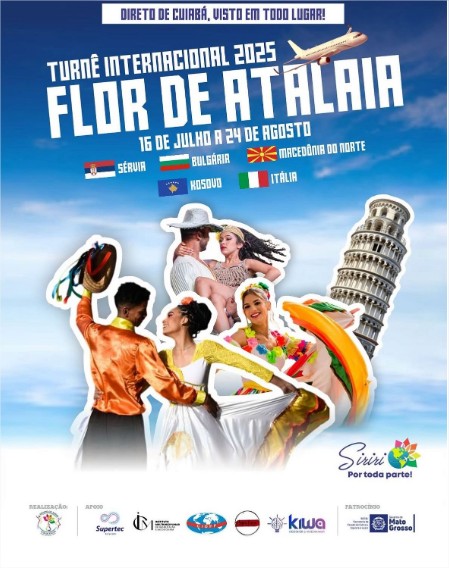 Do coração do Brasil aos palcos do mundo, o Grupo Flor de Atalaia faz turnê internacional na Europa, percorrendo 17 cidades, a maioria da Itália, além dos países Servia, Bulgária, Macedônia do Norte e Kosovo, em diversos Festivais de Dança Folclórica. Faz um mês que o grupo está neste intercâmbio cultural de apresentações não competitivas, levando, além do Siriri e o Rasqueado Cuiabano, um pouco do Samba, Carimbó, danças amazônicas, sulistas e do Nordeste. A turnê encerra no dia 24 de agosto levando o nome de Cuiabá, Mato Grosso e do Brasil nesses festivais.