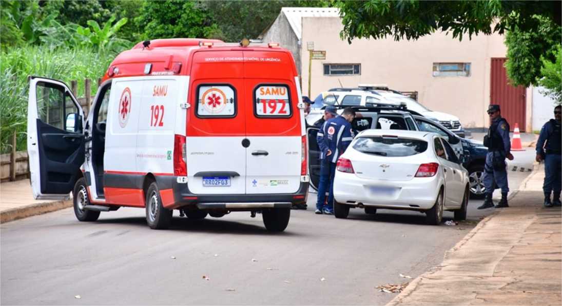 Ele estava com várias perfurações no pescoço. O veículo tem uma placa de led com o nome de uma empresa de transporte de passageiros por aplicativo.