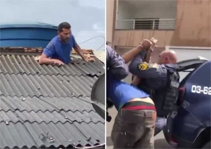 Um homem, 42 anos, ficou preso no telhado ao tentar fugir da polícia após invadir a casa da ex-esposa e ameaçá-la com uma faca, no bairro Jardim Bela Vista, em Sorriso (420 km de Cuiabá. O homem foi preso em flagrante. Vídeos registraram a ação dos policiais.