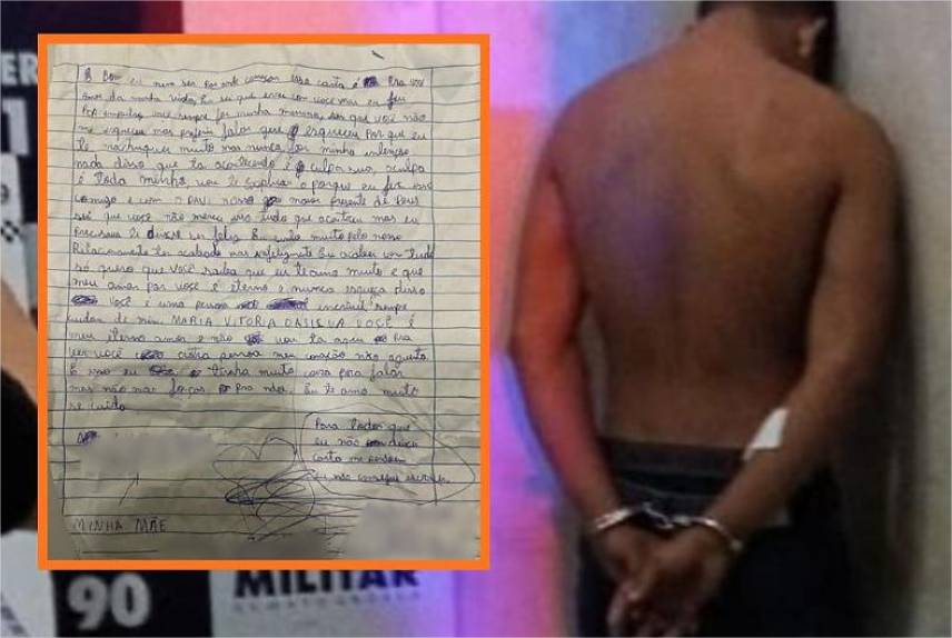 O homem de 21 anos, que foi preso na sexta-feira (2) depois de matar o filho de dois anos, deixou uma carta de amor para sua ex-companheira e mãe da criança. O suspeito tentou se enforcar, mas vizinhos acionaram o resgate e ele sobreviveu.