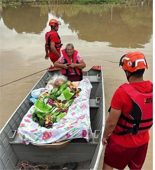 No local, os bombeiros constataram que a idosa, que é acamada, e sua filha não conseguiam deixar a residência com segurança devido ao elevado nível da água. Para realizar o resgate, foi necessário o uso de uma embarcação, já que o acesso por vias terrestres estava impossibilitado pelas condições do terreno. Com o auxílio do barco, as duas foram retiradas da residência sem ferimentos e encaminhadas para um local seguro.