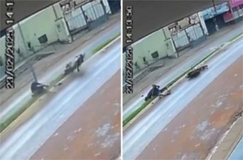 Câmeras de monitoramento flagraram o acidente. Pelas imagens, é possível ver a força da pancada.
