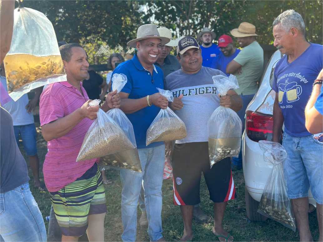 O deputado estadual Juca do Guaraná (MDB) realizou, no sábado (12), a entrega de 18.3 mil alevinos das espécies Tambaqui e Pacu na Comunidade do Sangradouro, em Santo Antônio de Leverger. Além dos alevinos, também foram entregues 350 quilos de ração, que foram distribuídas entre os produtores. A ação integra o Projeto Piscicultura no Campo, iniciativa voltada ao fortalecimento da piscicultura em comunidades rurais e indígenas do estado.