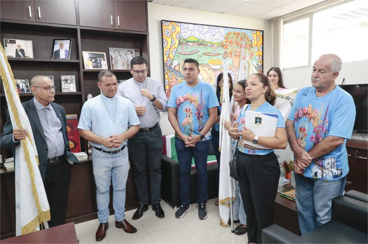 O vice-presidente da Assembleia Legislativa Júlio Campos (União) recebeu nesta terça-feira (25) a visita da Bandeira de Nossa Senhora da Guia, padroeira de Várzea Grande.