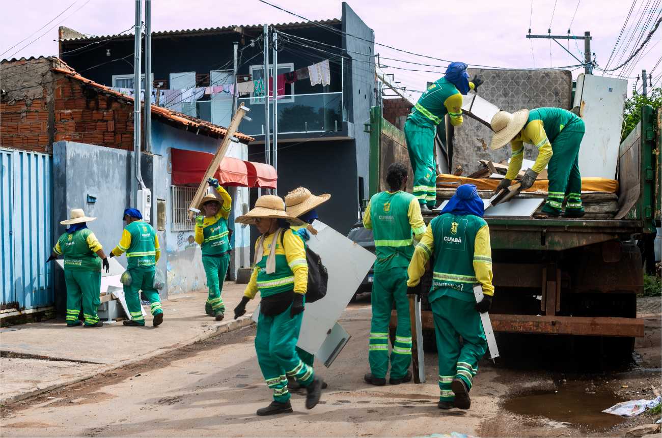 A Prefeitura de Cuiabá, por meio da Empresa Cuiabana de Zeladoria e Serviços Urbanos (Limpurb), deu início nesta terça-feira (22) a mais um mutirão de limpeza com o serviço de cata-treco, que visa facilitar o descarte adequado de materiais inservíveis. Ao longo da semana, 12 bairros e 6 avenidas da cidade serão atendidos pelos caminhões do programa.