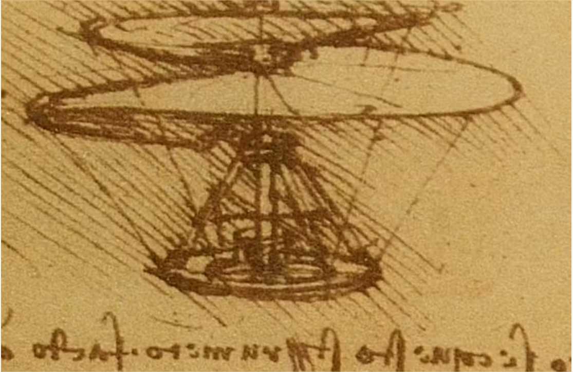 Naquela época, Leonardo da Vinci havia imaginado o parafuso aéreo sendo acionado por humanos. Nesse caso, o peso dificultaria a decolagem. Mas é possível que a máquina tivesse voado se fosse usado um motor elétrico. E foi isso que o estudo mostrou.
