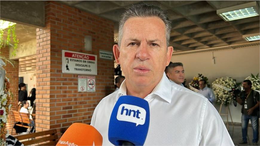 O governador Mauro Mendes (União Brasil) acompanhou o velório de Dona Maria, mãe do ex-governador Dante de Oliveira - Aline Coêlho/HNT