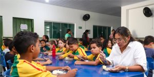 CARDÁPIO – A nutricionista Fernanda Soares de Freitas disse que a merenda escolar é elaborada de forma criteriosa, priorizando alimentos frescos e com alto valor nutricional. “Hoje mesmo a nossa alimentação foi à base de peixe, mantendo o cardápio regional. Mas todos os dias os alimentos são ricos em proteínas, essenciais para o bom desenvolvimento das crianças”.