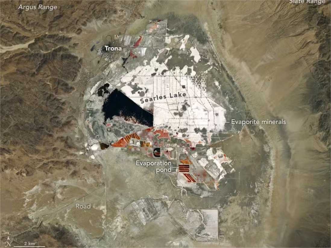 A partir da análise de amostras coletadas na superfície do asteroide Bennu, que cruza a órbita da Terra a cada seis anos, pesquisadores da Nasa descobriram que o corpo celeste é rico em certos tipos de evaporito, variedade de rocha formada por sais de sódio e carbonato. A constatação surpreendeu os especialistas, uma vez que se percebeu que o material é o mesmo encontrado em abundância no Lago Searles, localizado no Deserto de Mojave, nos Estados Unidos.