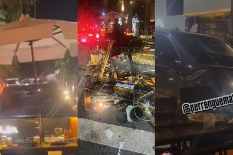 Nas imagens, é possível ver o motorista avançando em direção ao deck por várias vezes. Enquanto isso, populares fazem xingamentos e uma mulher joga um copo de bebida no para-brisas do veículo.