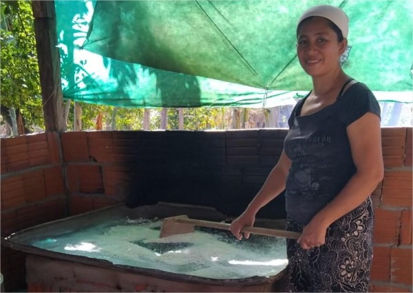 Na comunidade Carioca, próxima à Mineira, Pedrina Ribeiro de Souza Silva planta mandioca e produz farinha. Seu projeto prevê a compra de um triturador forrageiro, uma balança e uma seladora.