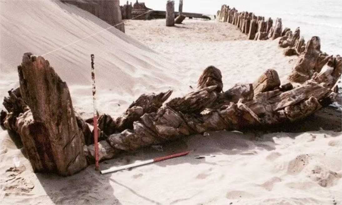 Durante duas temporadas, a construção de uma barreira temporária de sacos de areia contra a erosão das ondas permitiu uma escavação cuidadosa do local do naufrágio. Os trabalhos revelaram 43 camadas sedimentares que documentaram seu enterramento ao longo dos séculos, e a madeira encharcada foi analisada com microscopia eletrônica de varredura.